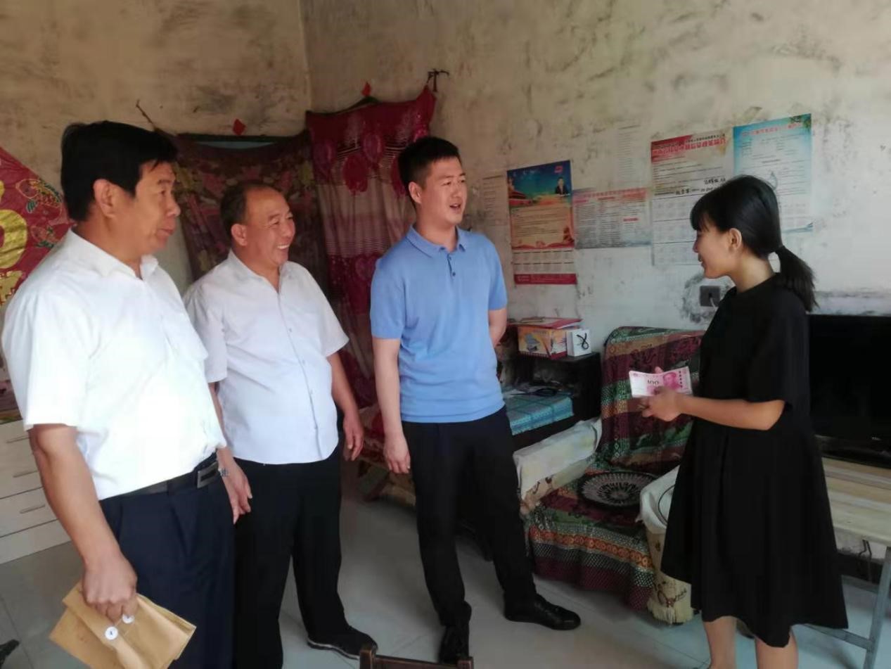 在郭亭于家中,總經(jīng)理助理曲笑輝關(guān)切詢問了她家人的身體情況和其入學情況,并勉勵郭亭于要刻苦學習,努力深造,早日成才,回報親人、回饋社會。郭亭于對公司領(lǐng)導、公司工會的關(guān)心和幫助表示感謝。