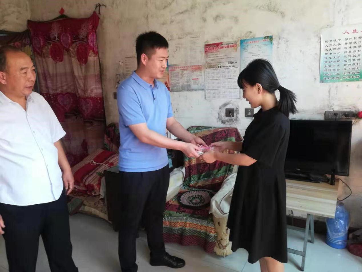 金秋將至,又是莘莘學子收獲的季節(jié),為進一步弘揚重視教育、尊重知識、鼓勵成才的社會風氣,幫助貧困大學生順利進入大學校園。 8月31日,公司總經(jīng)理助理曲笑輝,工會主席路建存在申村黨支部書記郭慶法的陪同下,深入申村貧困家庭郭亭于家中,將8000元助學金送到利用高考結(jié)束的空閑時間剛剛打工回來的郭亭于手中。