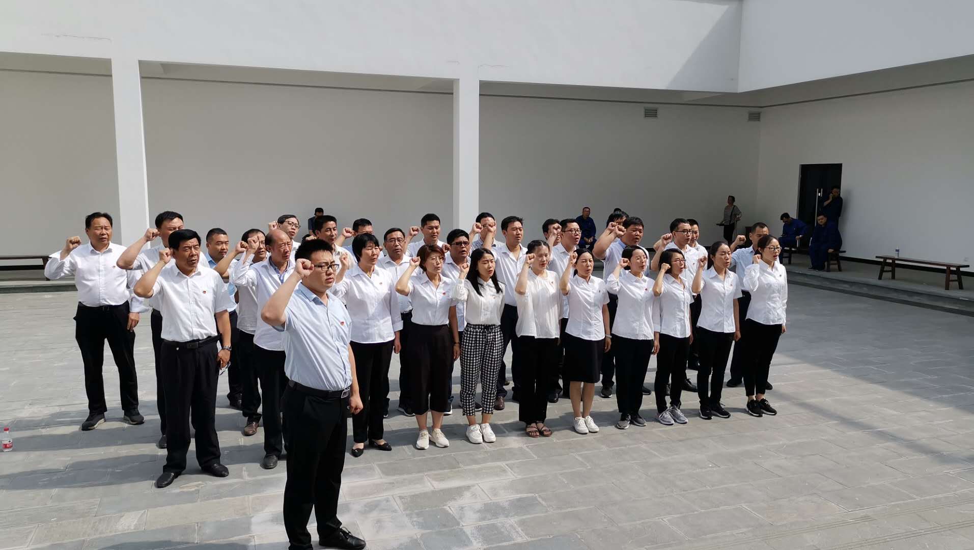 現(xiàn)場參觀學習結(jié)束后,全體黨員面對鮮紅的黨旗,集體宣誓,重溫入黨誓詞,堅定理想信念,提升思想境界。