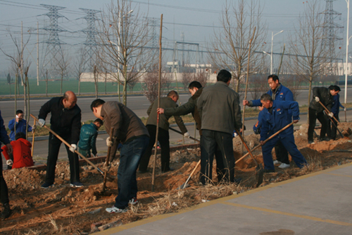 春回大地萬物蘇,植樹添綠正當時。3月26日,公司組織開展了春季植樹綠化活動,各職能部室及車間人員積極參加活動,僅用兩個多小時,就把600余株柳樹和欒樹苗深植沃土。