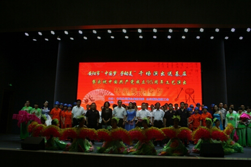 為慶祝中國共產(chǎn)黨成立95周年,樹立典型,表彰先進(jìn),7月1日,公司組織召開了 “七一”表彰會(huì)暨文藝演出活動(dòng)。表彰會(huì)回顧總結(jié)了過去一年來的工作,并對在公司各條戰(zhàn)線上做出顯著成績的16名優(yōu)秀共產(chǎn)黨員予以表彰。表彰會(huì)結(jié)束后,公司精心組織排練的文藝節(jié)目向各條戰(zhàn)線上的職工進(jìn)行了精彩的匯報(bào)演出。公司主要領(lǐng)導(dǎo)出席此次會(huì)議并觀看演出。