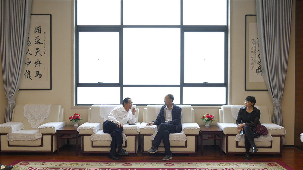儀式結(jié)束后, 林州市總工會主席栗旺生與公司董事長郭現(xiàn)生就企業(yè)文化陣地建設(shè)進(jìn)行了座談交流與探討。